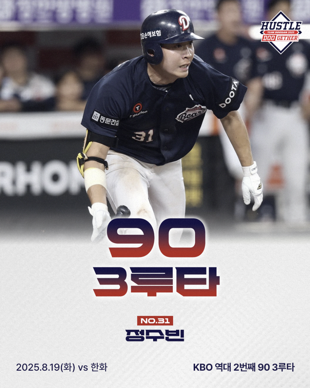 ⚾ 정수빈 90 3루타 | KBO 역대 2번째